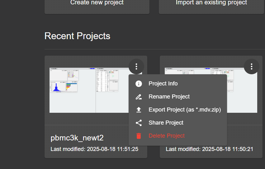 Click on the three dots icon in the corner of the project